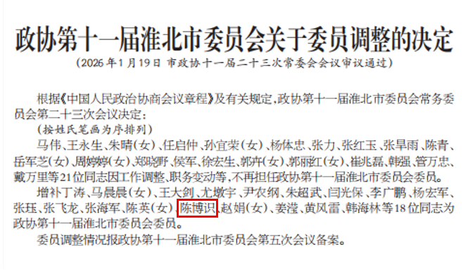 1月19日,经淮北市政协十一届二十三次常委会会议审议通过,pg游戏官网英语教研室教师、九三学社社员陈博识增补为政协第十一届淮北市委员会委员