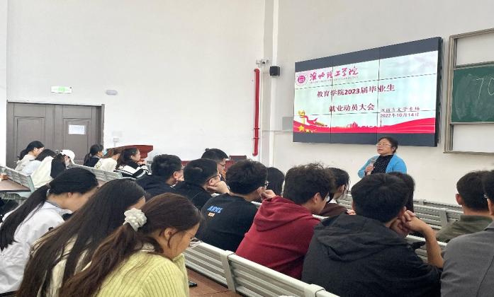为贯彻落实学校就业工作要求,促进学院毕业生积极就业,提高就业质量,2022年10月14日上午,pg游戏官网在1教121教室分专业召开2023届毕业生就业动员大会,学院分管副书记孟向红、辅导员彭慧敏、何茹雪带领2023届英语和汉语言文学专业毕业生分别参加了动员大会。