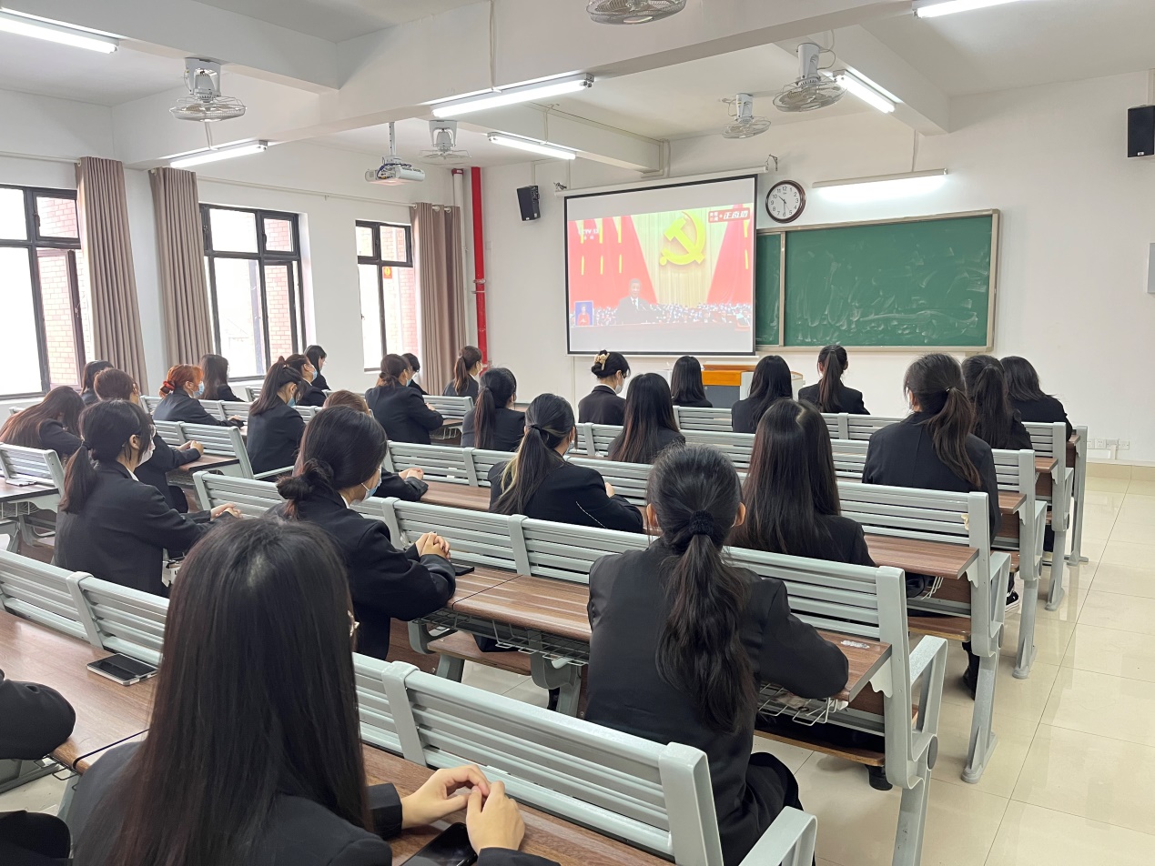 2022年10月16日上午,pg游戏电子模拟器组织学生党员、学生代表分别在第2教学楼412教室、413教室、414教室、415教室集中观看党的二十大开幕会盛况。