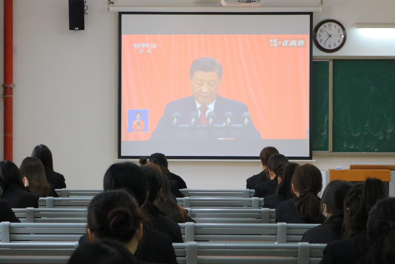 参加集中观看活动的学生党员、学生代表身着正装、佩戴党员徽章、团徽和口罩,大家全神贯注仔细观看、认真聆听党的二十大的盛况,大家对报告总结的过去五年来我国经济社会发展取得的伟大成就深感自豪,对未来五年经济社会发展宏伟蓝图充满信心。党的二十大是在迈上全面建设社会主义现代化国家新征程、向第二个百年奋斗目标进军的关键时刻召开的一次十分重要的大会。报告气势恢宏,立意深远,总揽全局,鼓舞人心,是一个反映全党意志、体现人民意愿的报告,是夺取新时代中国特色社会主义伟大胜利、实现中华民族伟大复兴的行动指南。