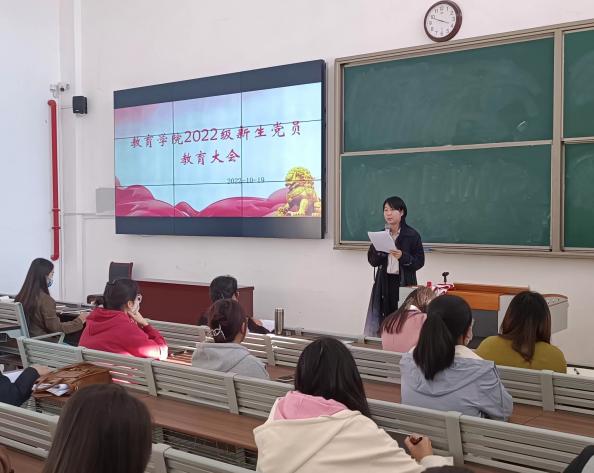 2022年10月19日下午,pg游戏电子模拟器在1教121教室召开新生党员教育大会。学院分管副书记孟向红、2022级全体辅导员以及全体新生党员参加了会议,会议由学生支部书记任若晨主持。