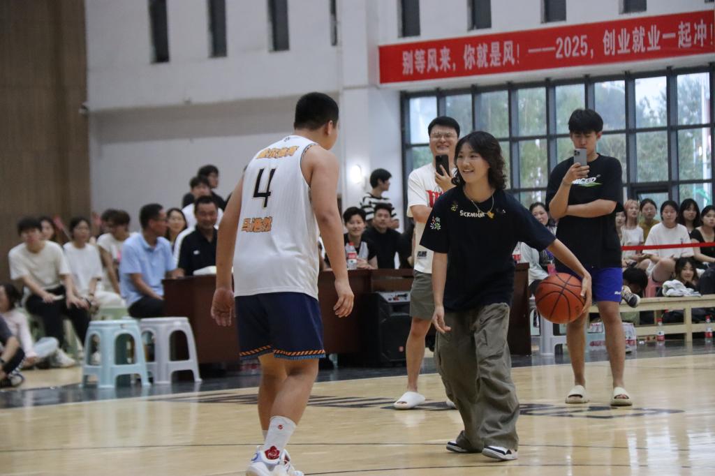 活动先以1v1互动开场。淮北理工学子无畏挑战集梦球员,积极进攻、全力防守,展现青春风采;集梦球员也积极应战,展现出篮球精神的传承,现场观众纷纷为学子们的勇气鼓掌。