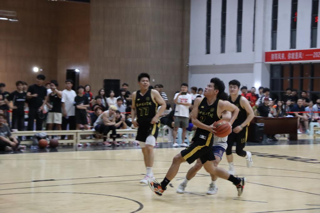 最令人期待的全场5v5比赛压轴登场。集梦风暴队凭借专业素养展开攻势,通过精准投篮和团队配合连续得分。淮北理工联队沉着应对,加强防守并伺机反击。双方球员的精彩表现赢得现场观众阵阵掌声,比赛气氛热烈。