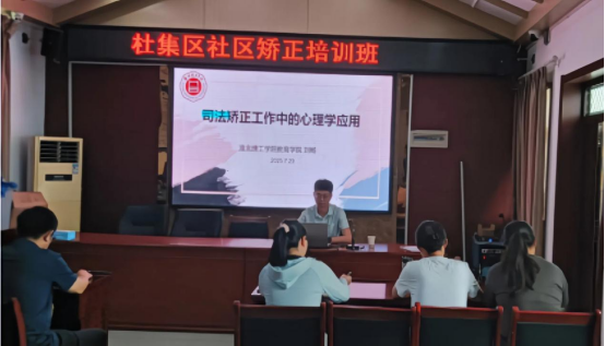 为助力提升社区矫正工作专业化水平,强化基层矫正人员心理矫治与沟通能力,8 月 23 日上午,pg游戏电子模拟器刘畅老师受邀为杜集区社区矫正管理局举办的全区社区矫正业务培训班授课,为社区矫正机构负责人、指导员、挂职民警、中队长及业务骨干带来一场聚焦 “司法矫正工作心理学应用”的专题辅导。