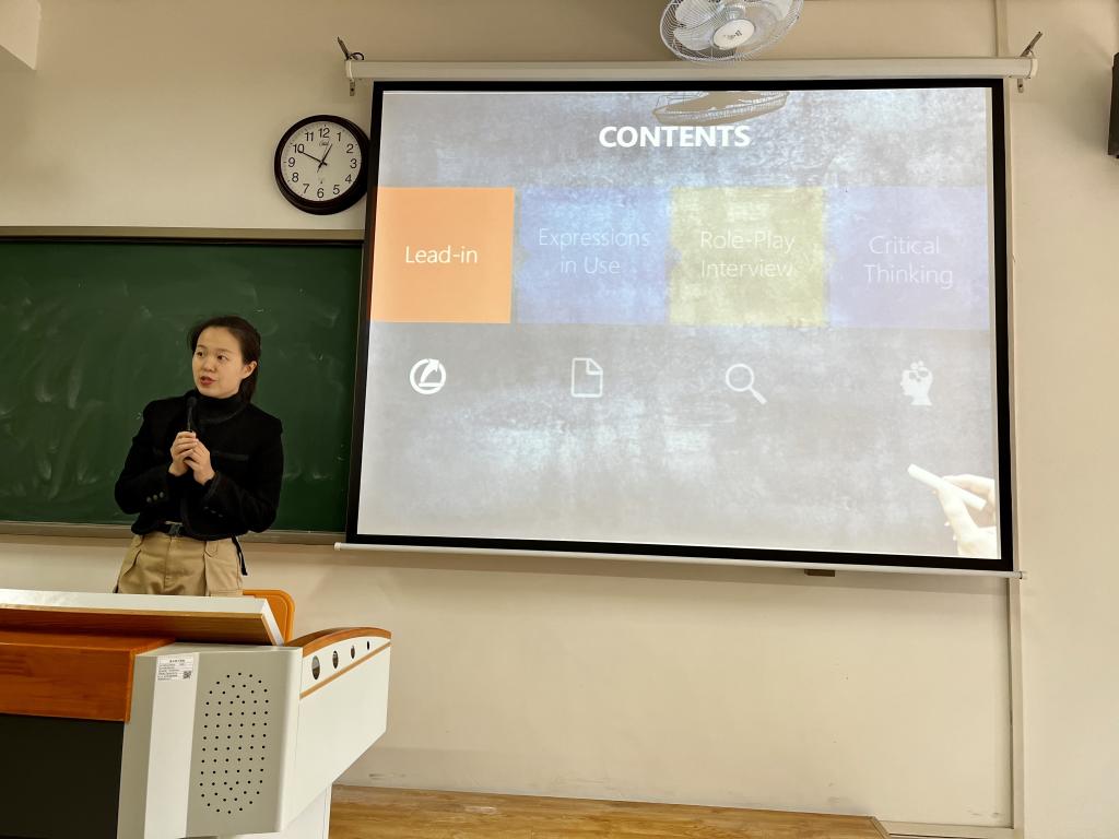 参赛老师选取本学期所带科目进行比赛,其中包括综合英语、英语听力、英语口语、英语阅读、英语写作以及大学英语,涵盖了英语专业的主干课程。经过激烈的角逐,最终李可老师脱颖而出,将代表英语教研室参加校级比赛。