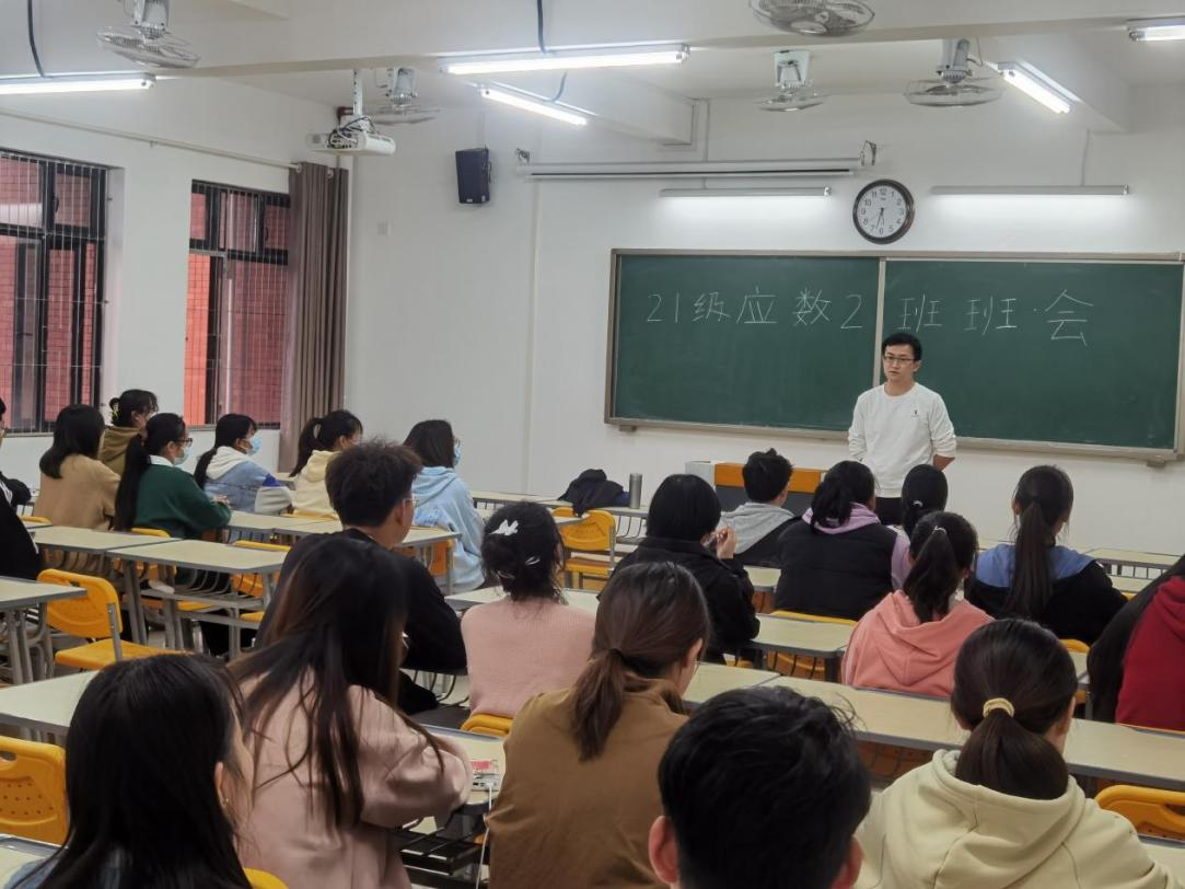 为进一步加强班级管理和学风建设,营造优良学风、团结奋进的班级氛围。我校pg游戏电子模拟器2021级数学与应用数学(2)班于2022年10月13日在二教309教室召开新学期主题班会,由班主任檀雷雷老师主持,应数2班全体成员参加。