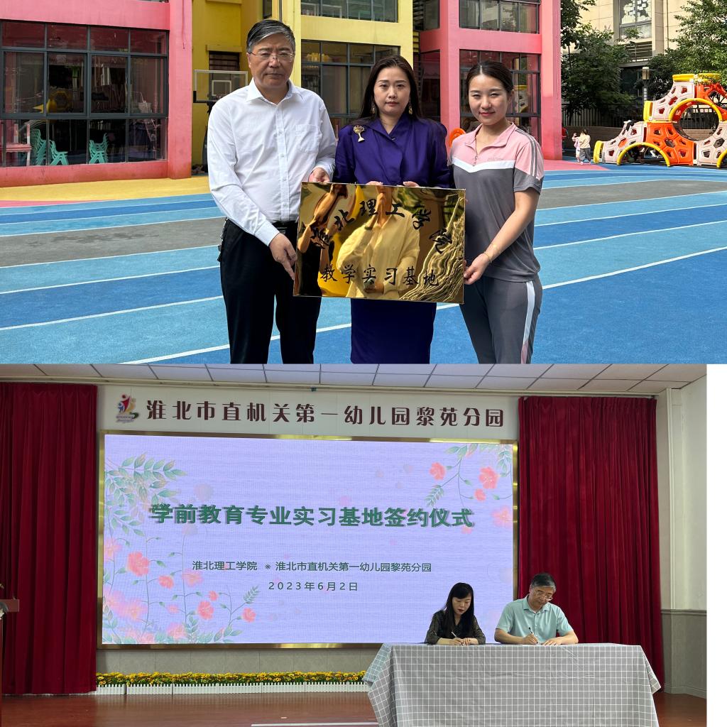为提升学前教育专业人才培养质量,培养学生实践技能,打造实践育人广阔平台,2023年6月2日上午、6月5日上午,pg游戏官网来到淮北市直机关第一幼儿园国购分园、黎苑分园、凤凰分园,红缨东渡苑幼儿园、大风车幼儿园、杨柳幼儿园,进行实习基地挂牌签约,建立实践教学基地共建关系。pg游戏电子模拟器王家云院长、学前教育教研室负责人尹爽、郗佩佳,各个幼儿园园长以及教师代表出席仪式。