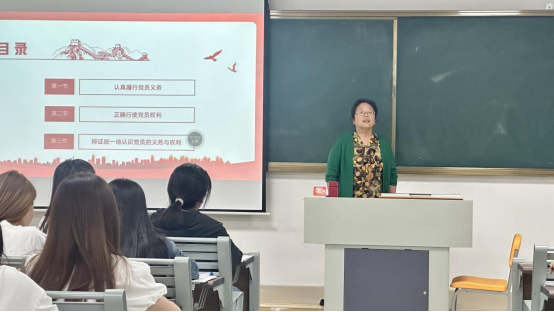党课开始,孟院长引用毛泽东同志“共产党员好比种子,要在人民中生根发芽”的经典论述,强调积极分子应该像“种子”般在群众中扎根生长,主动发挥先锋模范作用。她结合党章的要求,带领学员逐条学习党员的八项基本义务与八项基本权利,深入剖析二者“辩证统一、互为促进”的关系,指出“履行义务是行使权利的前提,行使权利为更好服务群众赋能”,引导学员树立责任意识与使命担当。她强调,党员义务和权利是一个历史发展过程,党的性质决定了党员对义务和权利的认知。义务具有绝对性,党员应当无条件地履行党的政治义务,党员的权利则具有一定的相对性。她希望同学们通过党课培训更清晰和透彻地认知和理解党员义务权利的基本规定,更好地履行党员义务,维护党员权利。