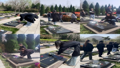 全体党员同志在支部书记高伟老师的带领下高举右拳,面对鲜艳的党旗重温入党誓词,在烈士英魂前许下郑重承诺,不忘初心,踔厉奋发,勇毅前行。随后,全体党员在宣誓结束后用心清理陵园内的垃圾,擦拭烈士墓碑上的尘土与雨渍,寄托了对先烈的哀思与崇敬。学生代表梁家豪同志倡议同学们要以先烈们英勇无畏、不怕牺牲的革命精神鼓舞斗志,以先烈们前仆后继、矢志不渝的进取精神坚定信心,接力中华民族伟大复兴的中国梦。