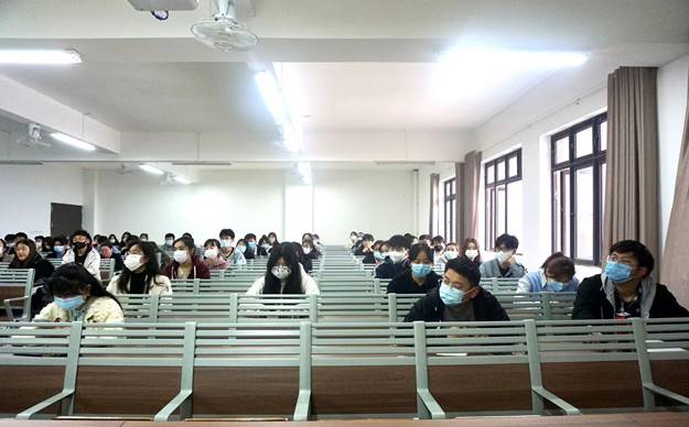 黄莹莹老师带领参会人员学习《教育部办公厅关于印发学生疫情防控期间学习、生活健康指南的通知》,要求学生会干部及各班班长团支书带头落实好学校防控管理的各项措施,非必要不离校,非紧急不离淮,做好校园消毒及防护。