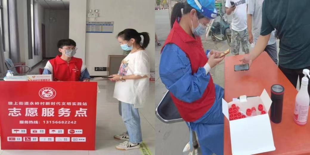 2021级应数1班王明硕所带团队成员积极参与埇桥区疫情防控工作。埇桥区青年志愿者协会为配合全区做好疫情防控各项工作,特面向全区广大青年群体招募志愿者,队员们成为协会的志愿者积极协助社区开展了一轮又一轮的全员核酸检测工作,他们顶着高温,依然热情、耐心地协助居民进行信息登记、扫码、维持现场秩序,引导居民一米间隔有序排队、讲解检测流程等。用实际行动诠释当代青年人的使命和担当,他们明白这场疫情防控阻击战中没有旁观者,每个人都要为打赢这场战役努力。