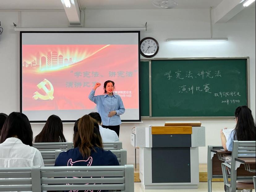 宪法是立国之法宝、强国之重器。为加强宪法宣传教育,提升大学生法治素养。9月14日下午学院在2教416教室举办“学宪法、讲宪法”演讲比赛。参赛选手围绕着宪法与国家、宪法与社会、宪法与个人,结合法治人物及故事或以身边小事为出发点,从不同角度阐述自己对宪法的理解与感悟,讲宪法故事,谈法律知识,赢得了评委老师和在场同学的阵阵掌声。选手们激情饱满的演讲为在场的同学带来一堂别开生面的宪法知识普及课,彰显了我校青年大学生学法、知法、懂法、守法的热情。经过评委老师们的讨论打分,本次比赛公布获奖名单为:顾代飞、李梦远荣获一等奖;陈县男、梁若楠荣获二等奖;杜越、邵芳、徐玲玲荣获三等奖。