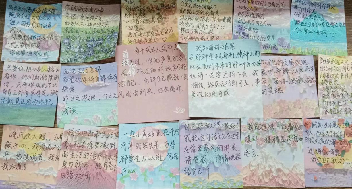 3月17日晚,团支部组织大家在校园内开展了“拒绝焦虑,与爱同行”活动,班级志愿者在操场安放了烦恼箱和温暖箱,参与的同学在便签纸上将自己的焦虑或烦恼的事情写下放入烦恼箱,将自己身边感动的人或事写下投送到温暖箱,一场“拒绝焦虑,与爱同行”的活动让同学们感到轻松,彼此增进了感情,脸上露出了微笑。