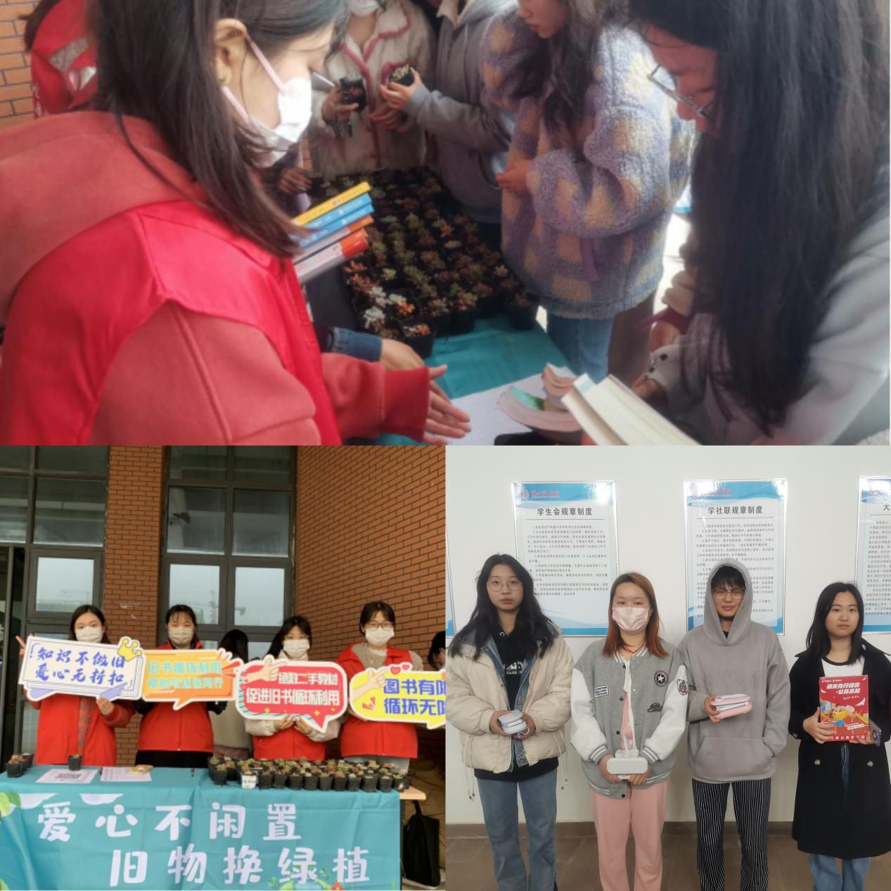 3月22日下午,志愿者们在校内开展“爱心不闲置,旧物换绿植”公益活动。活动中同学们积极响应,纷纷将闲置书籍进行兑换,共兑出多肉60余盆,置换图书近200余本。在大学生志愿者的辛勤付出下,同学们的热情参与中,取得了圆满成功!