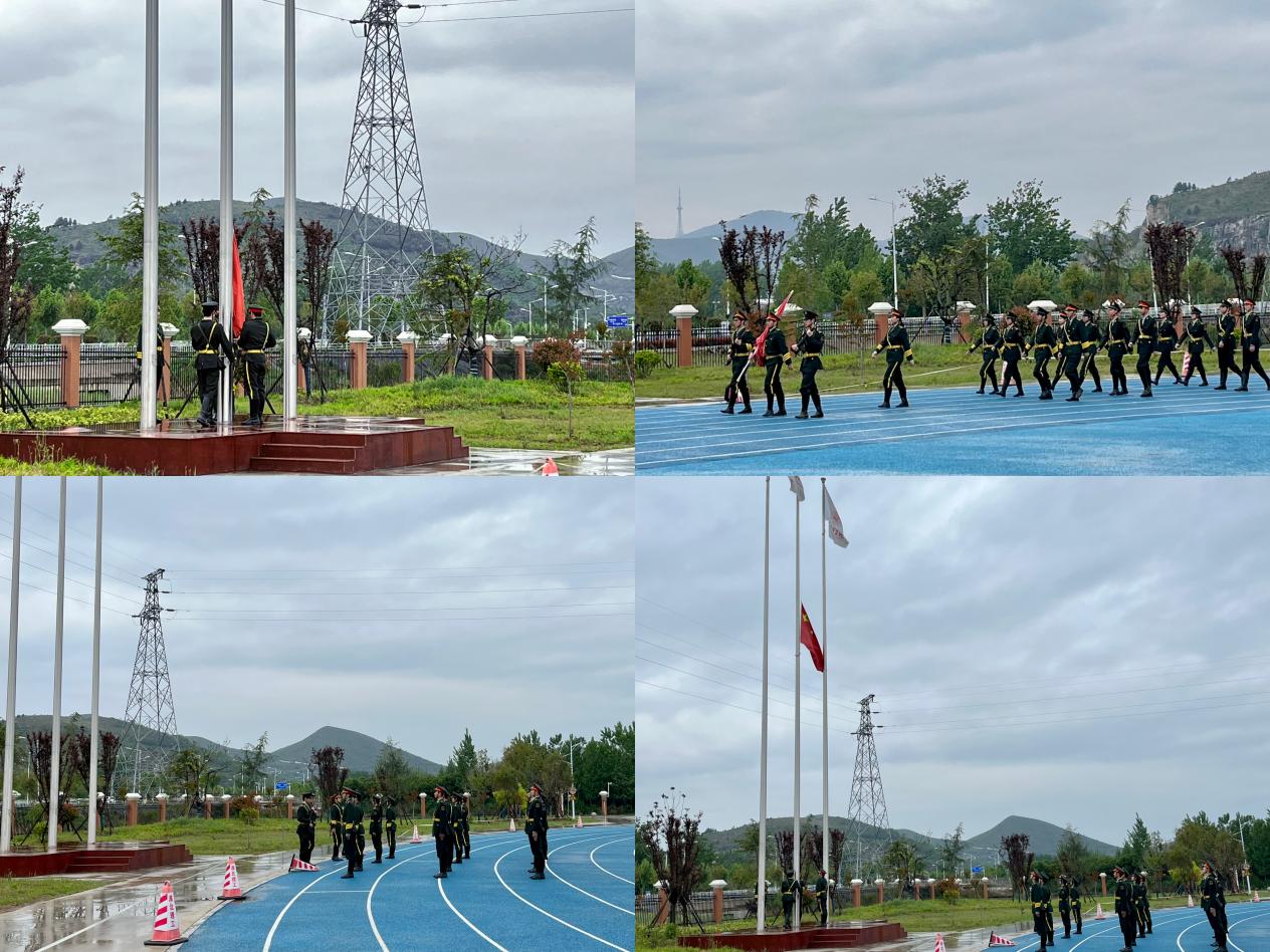 随后,国旗护卫队庄严入场,旗手们着装整齐,步伐矫健,在庄严的国歌声中五星红旗冉冉升起;全体师生肃立注目,高唱国歌,表达自己对祖国的崇高敬意。