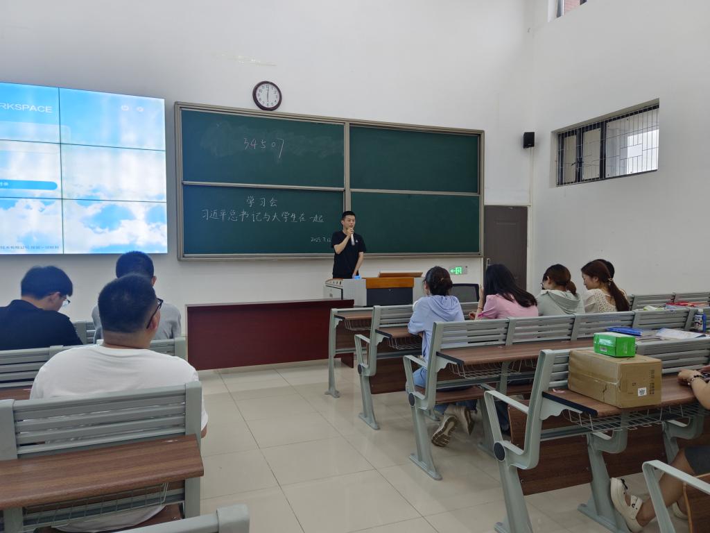 会上,孙虎带领大家共同学习了习近平总书记多次到高校考察调研与大学生朋友面对面座谈讲话的精神。总书记每到一所高校都十分关心大学生们的学习生活,与大学生们谈人生谈理想,他希望广大青年用脚步丈量祖国大地,用眼睛发现中国精神,用耳朵倾听人民呼声,用内心感应时代脉搏,把对祖国血浓于水、与人民同呼吸共命运的情感贯穿学业全过程、融汇在事业追求中,总书记的谆谆教导,深深地感染的参加学习座谈的同学们,大家表示一定要牢记总书记的嘱托,不负韶华,不负时代,不负人民,在青春的赛道上奋力奔跑。