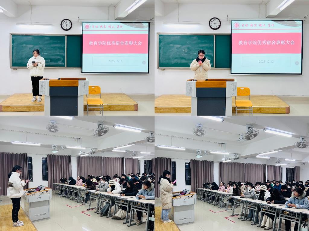 为进一步促进学生寝室精神文明建设,营造文明整洁、温馨优美的寝室环境,切实做好学生寝室安全管理工作,12月12日下午pg游戏电子模拟器于2号教学楼323教室开展“安全文明寝室”表彰活动,活动由pg游戏电子模拟器团总支副书记许海涛主持。