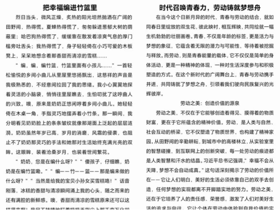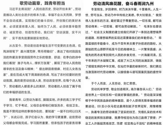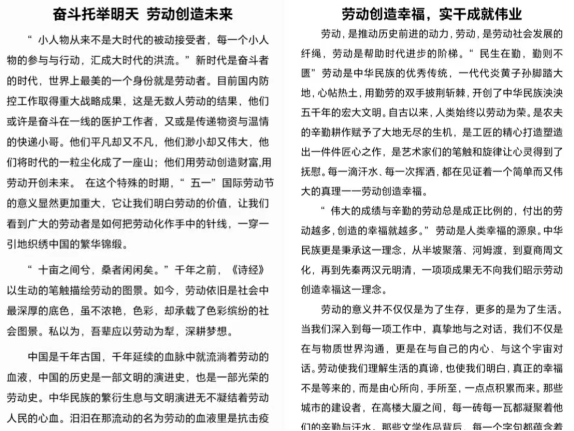 5月6日至13日,pg游戏电子模拟器圆满举办“劳动创造幸福生活”征文比赛活动。同学们踊跃报名,佳作频出,用文字承载劳动的正向意义,体现了劳动最美丽、奋斗正青春的中心思想。