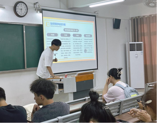 辅导员老师们从安全教育角度出发,对饮食、交通、消防、网络等安全方面进行了细致讲解,面对面指导学生如何应对突发性安全问题,强调在日常校园生活中要仔细甄别不良信息、谨防电信诈骗;注意寝室用水用电安全、保持整洁与通风,在细节上防患于未然。辅导员老师希望同学们能时刻紧绷安全之弦,牢固树立“安全无小事”的意识,共同维护和谐稳定的校园环境。