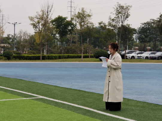 升旗仪式之后,学生代表24级数学与应用数学专升本4班王薪同学以“自律成就文明,行为铸就风范”为主题进行了国旗下的演讲。她热情的分享了自律能够给予我们的意义,她指出自律是我们人生成长路上的基石和阶梯,也是社会发展进步的推动力量。希望同学们能够在青春的道路上勇往直前,用自律与良好的行为共同书写属于我们的辉煌篇章。