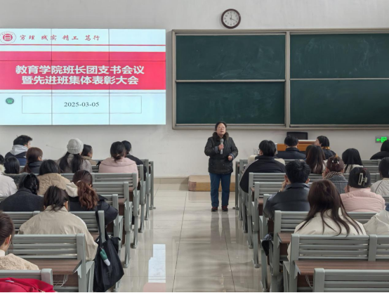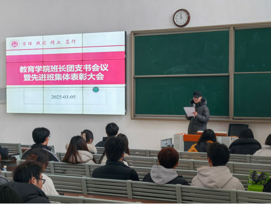 为促进班级管理交流,增强各班学生干部工作能力和激励全院班级努力营造良好班集体氛围。3月5日中午,pg游戏电子模拟器在一号教学楼121教室开展了“班长、团支书会议暨先进班集体表彰大会”。会议由学院团总支副书记许海涛主持,分管副书记孟向红、书记助理黄莹莹、24级全体辅导员以及各班班长、团支书参加了会议。