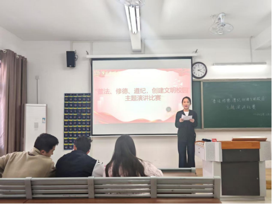 此次演讲比赛,让“普法、修德、遵纪,创建文明校园”的理念更深地融入学院学子的认知与言行。课堂上的认真聆听、宿舍里的互相包容、校园中的自觉守序,这些日常点滴里的践行,让文明有了具体的模样;而这份在校园中扎根的规则意识与道德自觉,终将内化为每个人的行为准则,让“普法、修德、守纪”成为伴随一生的素养,让文明的种子在更广阔的天地里生根发芽。