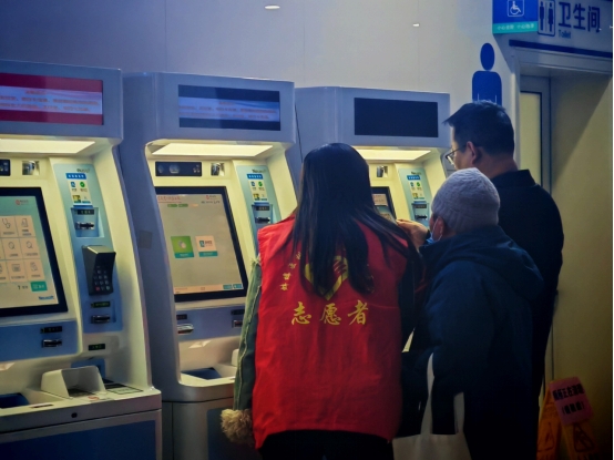 2023级应数4班王雨欣同学和汉文8班魏玉洁同学一起参加了蚌埠医科大学第一附属医院的志愿活动。本次志愿者活动中,她们自愿被分到需要与患者交流的导诊台工作。“为患者提供咨询,与不同年龄、不同背景的患者积极沟通,耐心对待每位患者,是我们在这个职位的责任。”不仅如此他们还需协助患者使用自助挂号机,帮助他们填写病历信息,确认患者信息填写无误,认真关注患者健康状况。在休息的时候她们还参与了一些特殊患者的陪伴工作,不断传递温暖与关怀,不仅提供了实际的帮助,也给予了患者精神上的支持。